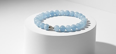 Bu bileklik, mavi renkte Howlite (Hayulit) doğal taş boncuklardan üretilmiştir.