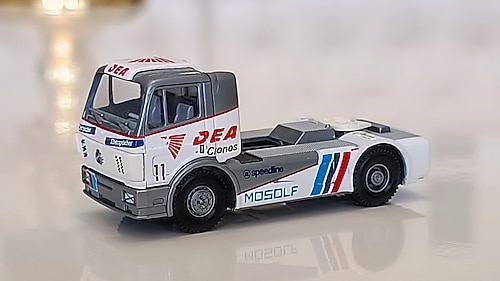 Kamyon yarışlarının en heyecanlı dönemlerine damga vuran Mercedes SK, Wiking yorumuyla oldukça sade ve şık duruyor. Beyaz gövde üzerindeki DEA logoları, 90'ların o temiz ama agresif yarış estetiğini çok iyi özetliyor. Genellikle lojistik temalı ağır vasıta toplayanlar için bu tarz bir yarış kamyonu, koleksiyonun rutinini bozan ve hikayeyi zenginleştiren çok keyifli bir parçadır. Wiking'in kalıp netliği, aracın o "kaslı" yapısını 1:87 ölçekte bile hissettirmeyi başarıyor.