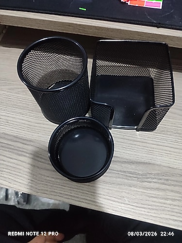 GLOBAX METAL 3'LÜ KALEMLİK SET KALEMLİK - YUVARLAK ATAŞLIK - KÜP BLOK SİYAH METAL