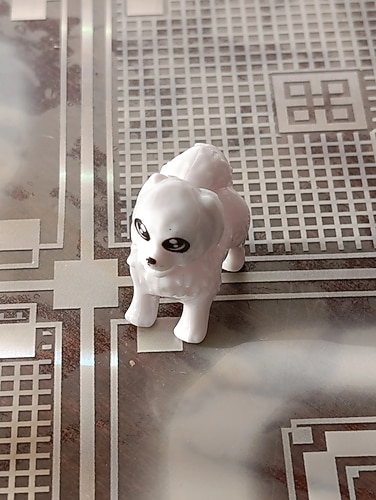 Bu küçük beyaz aksiyon figürü, detaylı yüz ifadeleri ve pürüzsüz yüzeyiyle bir köpeği andırıyor. Üzerinde '88' işareti bulunuyor.