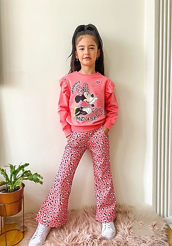 Minnie Mouse Desenli Kız Çocuk İspanyol Paça Takım