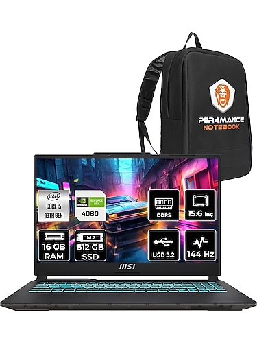 Msı Cyborg 15 Intel Core I5-13420H 16GB 512GB SSD RTX4060/8GB 15.6" Fhd 144Hz Fdos Taşınabilir Bilgisayar
