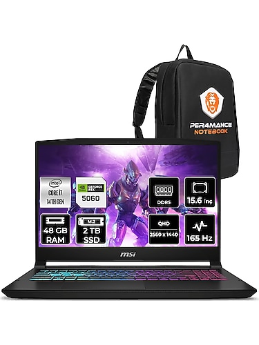 MSI  Msı Katana 15 Intel Core I7 14650HX 48GB 2tb SSD RTX5060/8GB 115W 15.6" Qhd 165Hz Fdos Taşınabilir Bilgisayar