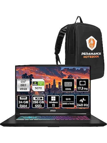 Msı Katana 17 Hx Intel Core I7 14650HX 24GB 256GB SSD RTX5070/8GB 17.3" Qhd 240Hz Windows 11 Home Taşınabilir Bilgisayar