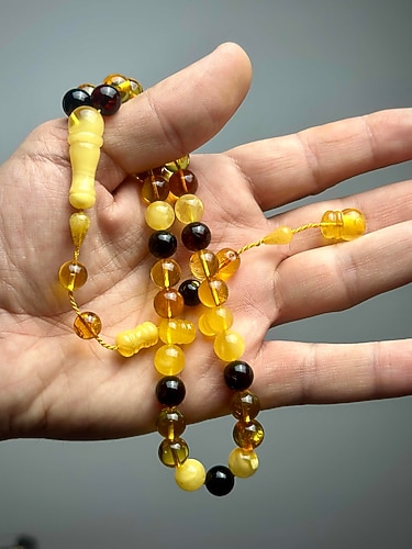 - 9,5mm habbe ölçülerinde - Sistem dizayn - Multicolor yapıda - 22 gram ağırlığında - Doğal Kaya Damla Kehribar Tesbih Ü.K: 9006