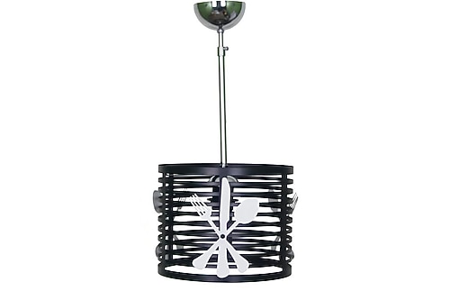 MUTFAK ORTA TEKLİ SİYAH BEYAZ ÇATAL BIÇAK KAŞIK DEKORLU AVİZE