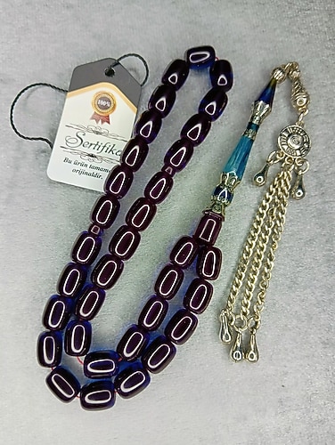 NAKKAŞ İMAME ATEŞ KEHRİBAR TESBİH 9X12 MM HABBE ÖLÇÜSÜ KAPSÜL KESİM KOLEKSİYONLUK RESİMDEKİ TESBİH KARTON KUTULU GÖNDERİLECEKTİR.