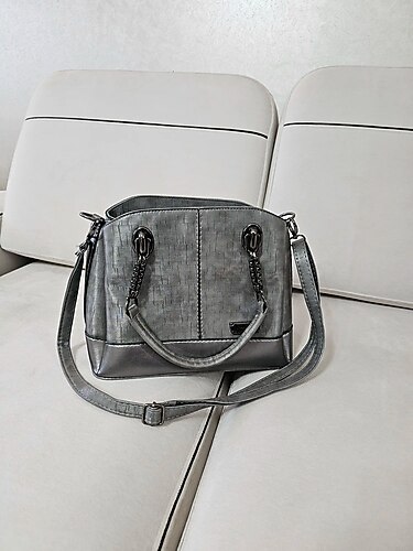 New Style marka gri renk kadın el ve omuz çantası zincir detaylı saplar ve dokulu yüzey tasarımına sahiptir. Az kullanılmış olup yeni gibidir. İçi-dışı temizdir ve sorunsuzdur. 3 tane ana gözü bulunmaktadır. Ana gözlerin birinde fermuarlı iç cep vardır. Arka tarafında da fermuarlı yan cep mevcuttur.