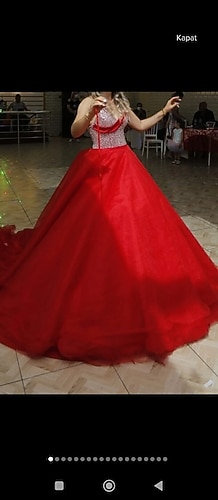 ekimde 2021 de dikildi yeni tasarım kışın rahatlıkla giyebileceginiz kırmızı nişanlık Özel tasarımdır prenses modeldir icinde tarlatani mevcut tarlatan ayri olup isterseniz parlatansiz kullanabilirsiniz sadece 3 saatliğine kullandim arkadan ayarlamali olup etek kisminda fermuari mevcuttur o yuzden m bedenede rahat olur icten sudyen desteklidir istege bagli destek cikarilabilir 10 kat tulden olusmaktadir ust islemeleri kaliteli boncuktan olusup tek tek dikilmistir herhangi bi yerinde deforme yoktur sadece on tulunde masaya sıkıştığı icin iki delik olustu 10 kat tulden oldugu icin belli dil ben özel diktirdim boncuk Preciosa Gelinlik Boncuğu Üçgen boncuktur karanlıkta ışıldiyor ihtiyactan satiyorum Mersin icine kiralamada yapilabilir #nişanlık #kırmızı #kırmızınisanlik #kınalık #abiye #gelinlik #nisançiçeği #trendyol #kınaelbisesi #prensesmodel #kabarıknişanlık #kabarıkgelinlik #kabarıkkınalık
