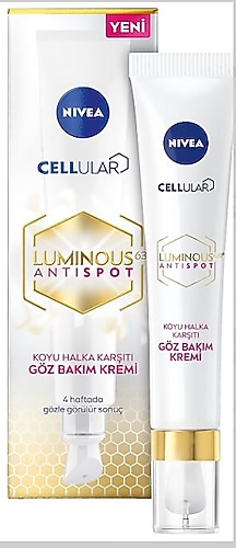 110 yıllık cilt bakım uzmanı NIVEA’dan NIVEA Luminous630 Koyu Halka Karşıtı Göz bakım kremi, aydınlanmış ve genç görünümlü göz çevresi için 4 haftada gözle görülür sonuç sağlar. NIVEA Luminous630 göz kremi pigmentasyonu dengeler ve koyu halka görünümünü azaltmaya yardımcı olur. Enerji veren kafein göz altı torbası görünümünü azaltmak için yorgun gözlerdeki şişkinlik görünümünü almaya yardımcı olur. Hyaluronik Asit cildi nemlendirir ve ince çizgi ve kırışıklık görünümünü azaltmaya yardımcı olur. Dermatolojik olarak onaylanmıştır. Tüm cilt tipleri için önerilir. Hassas ciltler için de uygundur. Tüm cilt tonlarında etkilidir. Nasıl kullanılır?: Temizlenmiş göz çevresine aplikatör ile masaj yaparak krem tamamen emilene kadar uygulayın. Ekstra ferah bir etki için ürünü buzdolabında saklayın. Luminous630 içeren ürünleri günde en fazla 4 kere uygulayın.