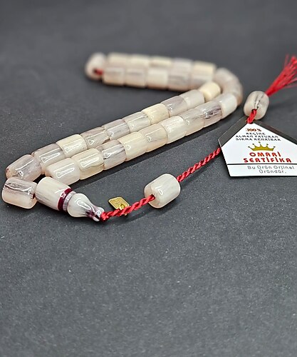 OMARİ imame çift parça beyaz hamur kesme havşalı MÜHÜRLÜ SERTİFİKALI habbe ölçüsü 12 x 20 mm dir. piyasada olmayan zirve bir ürün.