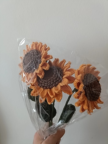 Ürün sıfır paketindedir. El emeği amigurumi örgüdür. Sap kısmı çelik tel içerir. yaprak kısımları tellidir. Ürün orjinal paketinde gönderilecektir.