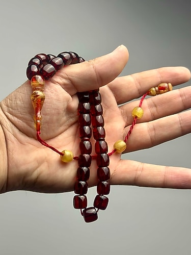 - 10,5x10,5mm ölçülerinde - Sistem traşlı - Yeni döküm sıkma kehribar tesbih