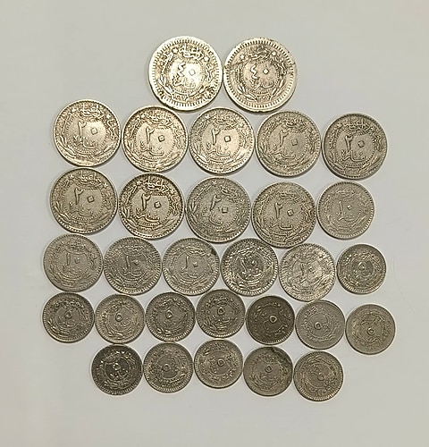 Çok güzel kondüsyonda olan kulp yada delik olmayan toplam 30 Adet Osmanlı Nikel paralar 2 Tane 40 Para 9 Tane 20 Para 6 Tane 10 Para 13 Tane 5 Para