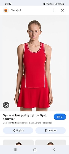 Cok zayifladigim icin satiyorum.Orjinal markadir.1 Kez bile giyilmedi ve yıkanmadı.M bedendir.Ust bedene oturuyor.Kirmizi tenis etegi ile birlikte alabilirsiniz takim olarak giyilebilir.