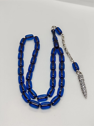 7*11 mm Ölçülerinde Atölye İşi Gümüş Kaplama İmitasyon Mermi Model Püskülle Dizayn Edilmiş Parlement Mavisi Ateş Kehribar. Alıcısına Şimdiden Hayırlı Olsun.