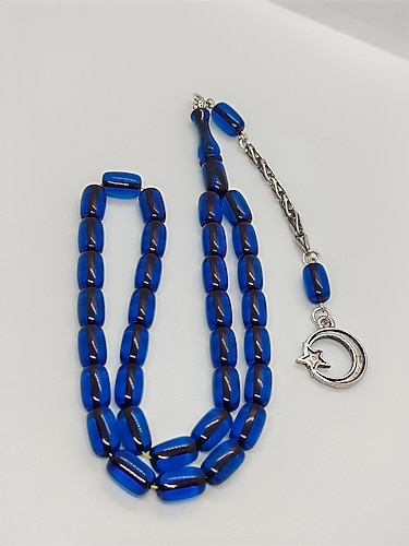 7*11 mm Ölçülerinde Atölye İşi Gümüş Kaplama İmitasyon Ayyıldız Püskülle Dizayn Edilmiş Parlement Mavisi Ateş Kehribar. Alıcısına Şimdiden Hayırlı Olsun.
