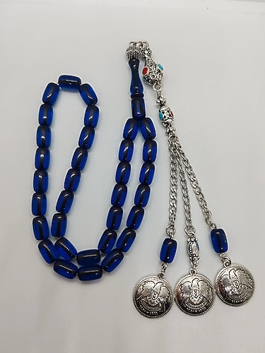 7*11 mm Ölçülerinde Atölye İşi Gümüş Kaplama İmitasyon 3 Sallantılı Mineli Halep Püskülle Dizayn Edilmiş 2 Yedek Habbeli Parlement Mavisi Ateş Kehribar. Alıcısına Şimdiden Hayırlı Olsun.