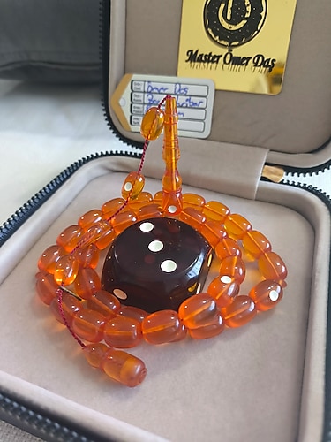 Ömer Daş 8*12 mm Patinli özel kutusunda yapıldığı Zar ile beraber Muazzam İşçilikli PATİNLİ ZAR KEHRİBAR TESBİH