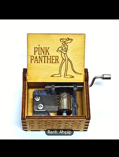Bej renkte ahşap müzik kutusu, kapağında Pembe Panter figürü bulunur ve çevrilen koluyla müzik çalar. Renkli ve şık. Bu vintage ürünü kaçırmayın derim. Güzel günlerde kullanmanızı dilerim. Tmp-184