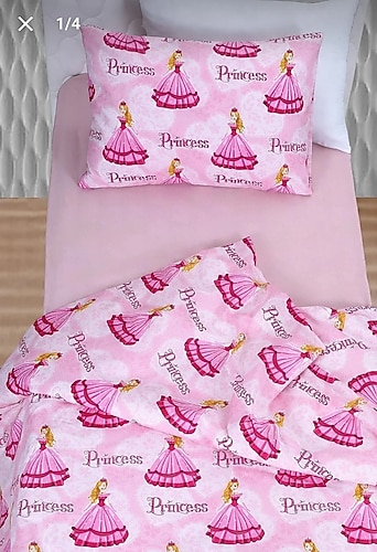 Pembe Prenses Desenli tek kişilik Nevresim Takımı çarşaflı...