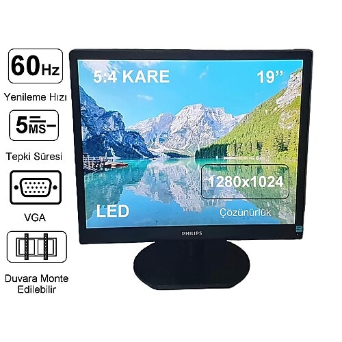 PHİLİPS 19S4L 19" LED Kare Monitör VGA Girişli 1280 x 1024 2. El Temiz 3 Ay Garantili