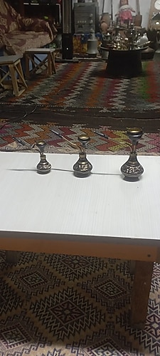 küçük boy pirinç işlemeli nargile seti 3 boydur galiba kullananlar da varmış ister dekor ister kullanın ölçüleri resimlerde mevcut aklınıza takılan soruları sorup bilgi alabilirsiniz dolabımı ziyaret ederek farklı ürünler görebilirsiniz iade yoktur alana hayırlı olsun