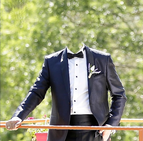 Ürün içeriğinde tamamı PİSERRO marka damatlık ceket, yelek, beyaz gömlek, özel gravatı, papyonu, bel kuşağı ve mendilleri vardır. Lacivert ve desenlidir. Slim Fit 50 beden. Pantolon dahil değildir, koyu lacivert bir pantolon ile kombin yapılabilir.