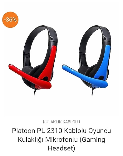 Platoon PL-2310 kablolu oyuncu kulaklığı mikrofonlu, kırmızı ve mavi renk seçenekleriyle oyun sırasında net iletişim sağlar.