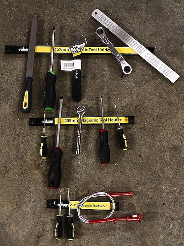 Karbon çelikten üretilmiştir Aletleri yerden uzak tutar ve organize eder. Çok güçlü mıknatıs. Boyutlar 200 mm, 300 mm, 457 mm. Sıfır ürün.