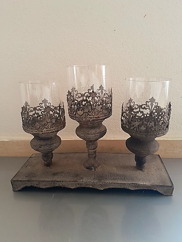 Cam fanuslu metal şamdan