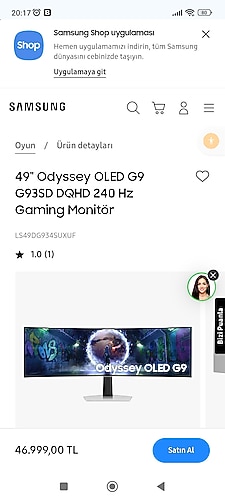 Samsung Odyssey OLED G9 G93SD LS49DG934SUXUF 49" 0.03 ms Dual QHD Curved 240 Hz Oyuncu Monitörü Özellikleri