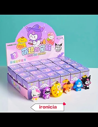 Sanrio figür anahtarlık seti, 7 figürden oluşmaktadır. Hello Kitty, Melody, Kuromi, Pompompurin, Küçük ikizler şeklinde olarak içeriği vardır. Ürünler kullanılmamıştır. Oldukça popüler bu setin toplam fiyatıdır. Tekli alımlar için verilmiş fiyattır. Set alımı için lütfen iletişime geçiniz. Güzel günlerde kullanmanızı dilerim. (Alım yapmak için lütfen ilan açtırınız.) Tss208
