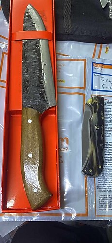 satılık şef bıçagı dövme makas çeliği ve koç boynuzu saplı çakı mov15 çelik kılıflı.