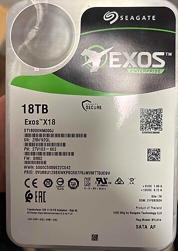 Seagate Exos X18 18TB kapasiteli, SATA AF arayüzüne sahip bir sabit disk. 7200RPM 250mb Okuma/yazma değerine sahip. Deneme amaçlı bilgisayara takılmıştır. Sağlık %100 Tekliflere açığım