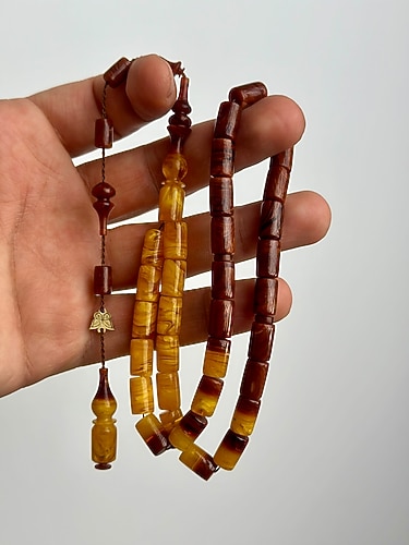 - 7,5x11,5mm ölçülerinde - Çift renk - Bol hareli - Emine Reşvani İmzalı kesme tesbih Ü.K: 1718