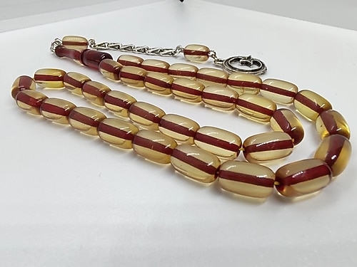 7*11 mm Ölçülerinde Atölye İşi Gümüş Kaplama İmitasyon Ayyıldız Püskülle Dizayn Edilmiş İp Yolları Kırmızı Şeffaf Ateş Kehribar. Alıcısına Şimdiden Hayırlı Olsun.