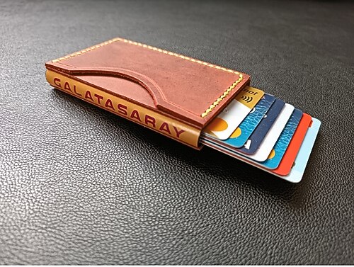 -sıfır ürün- Galatasaray kişiye özel hakiki deri RFİD güvenlikli mekanizmalı kartlık
