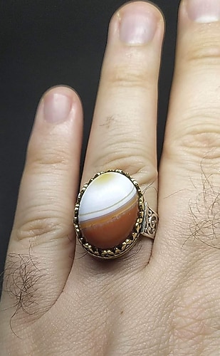 akik taşı ile kombin edilmiş, 14,8 gram ağırlığında, 25-26 ölçülerinde #gümüş #yüzük #akik #taşı #erkek #yüzük