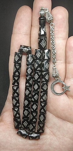 Gümüş İşlemeli Sıkma Kehribar Tesbih. püskülü de gümüştür.