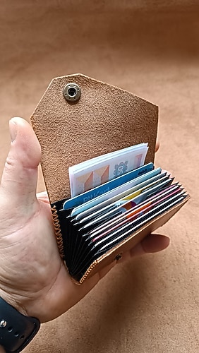 Hakiki deri el yapımı Akordiyon kartlık 10 kart kapasiteli