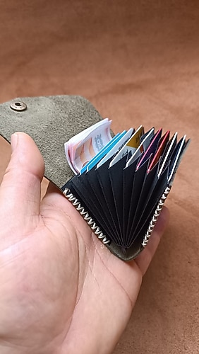 Hakiki deri el yapımı Akordiyon kartlık 10 kart kapasiteli