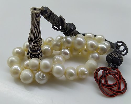 gümüş İmameli gümüş Kazaz püsküllü 5 adet 33 lük inci tesbih tanelerinden seçilerek oluşturulmuştur.