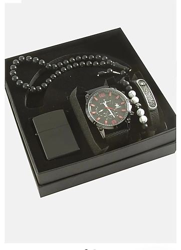 Kayışlı kol #saati, #tesbih, #bileklik ve çakmaktan oluşan bu özel set; stiline önem veren erkekler için özenle hazırlandı.kodu 155