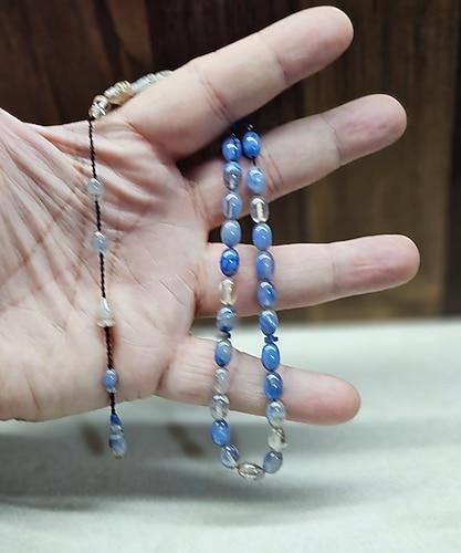 SIKMA KEHRİBAR BENZETMESİ, olan bu zarif tesbihnmavi ve beyaz tonlarıyla göz alıcı estetik bir görünüm sunar ve günlük kullanımınızda şıklığınızı tamamlar.habbe ölçüsü: 6x9mm dir.tesbih boyu:30 cm dir.