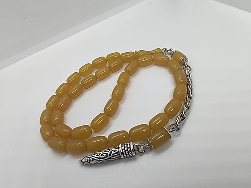 7*11 mm Ölçülerinde Atölye İşi Gümüş Kaplama İmitasyon Mermi Model Püskülle Dizayn Edilmiş 2 Yedek Habbeli Sıkma Kehribar. Alıcısına Şimdiden Hayırlı Olsun.