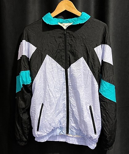 Siyah-Lila-Turkuaz Bomba! Vintage Verve Shell Bomber Yağmurluk Jacket.