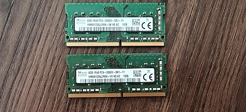 2 adet 8 GB 2666 MHz Hynix RAM Herhangi bir sorunu yok, çalışıyor.