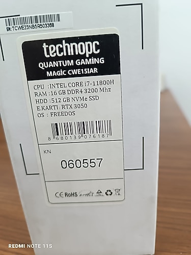 Technopc  Quantum Gaming Magic CWE15IAR i7-11800H 16 GB 512 GB SSD RTX3050 15.6" Full HD Gaming Laptop
