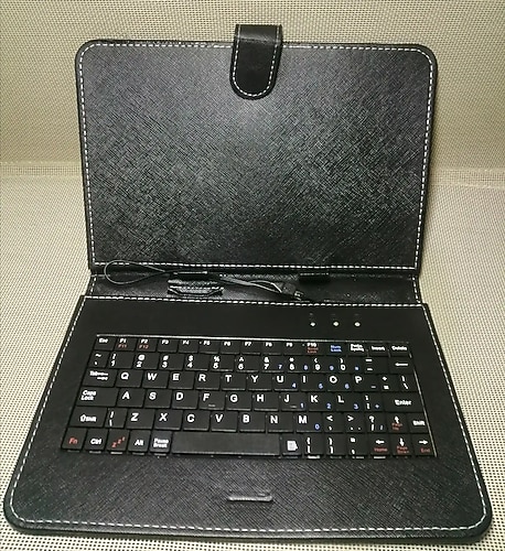 Sıfır, hiç kullanılmamış telefon ve tablet uyumlu kılıflı USB klavye.